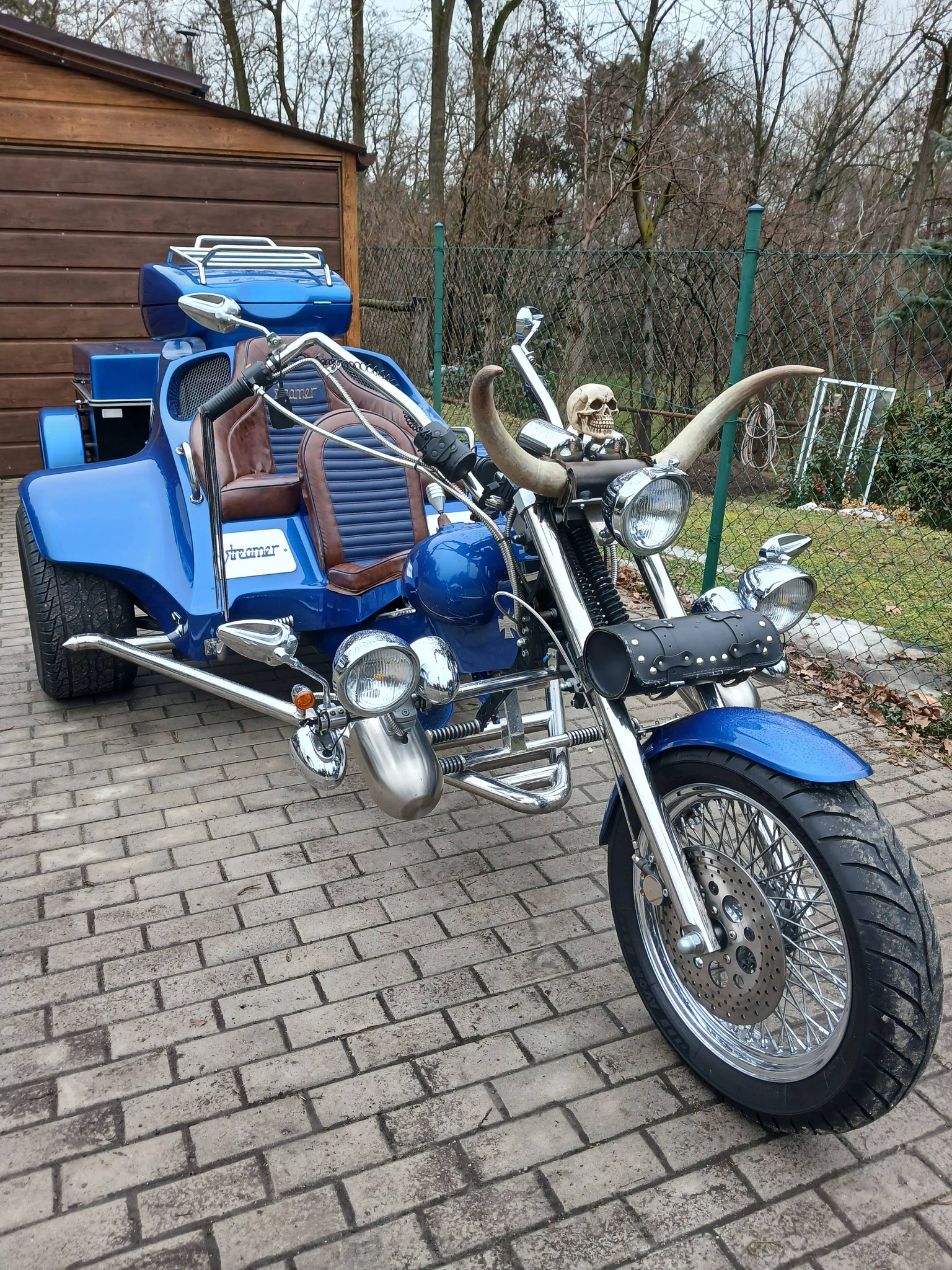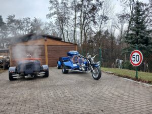 Tříkolka má spoustu doplňku trubka z lokomotivy Sergej + 6l. nádoba na stlačený vzduch včetně kompresoru. Zvonek z tramvaje. Tříkolka dokáže cca 27 zvuků.