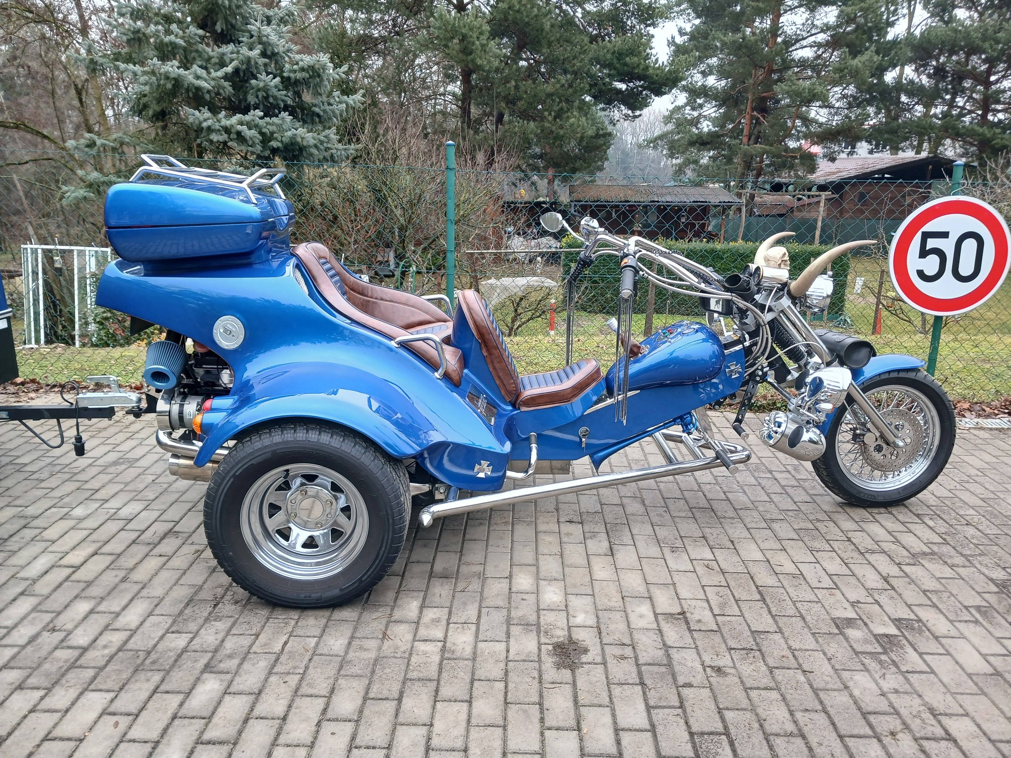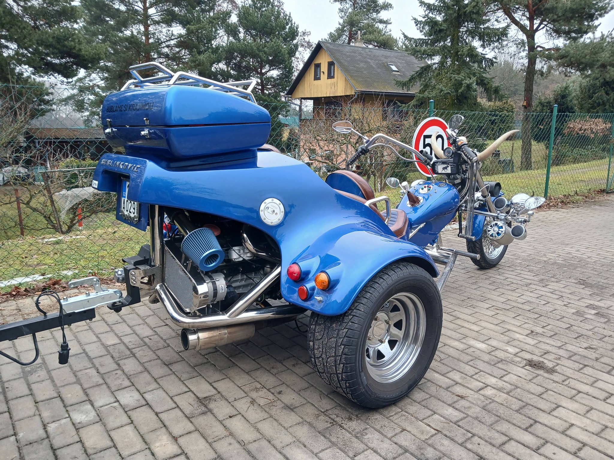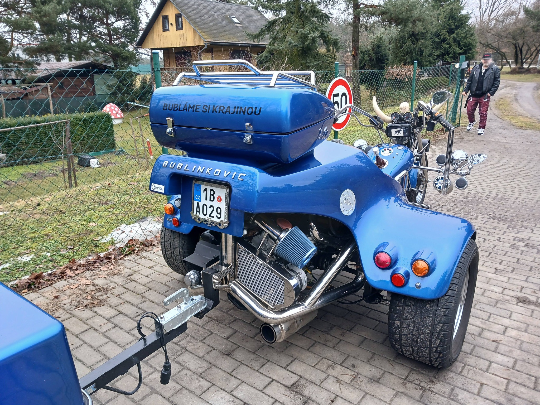 Tříkolka má spoustu doplňku trubka z lokomotivy Sergej + 6l. nádoba na stlačený vzduch včetně kompresoru. Zvonek z tramvaje. Tříkolka dokáže cca 27 zvuků.